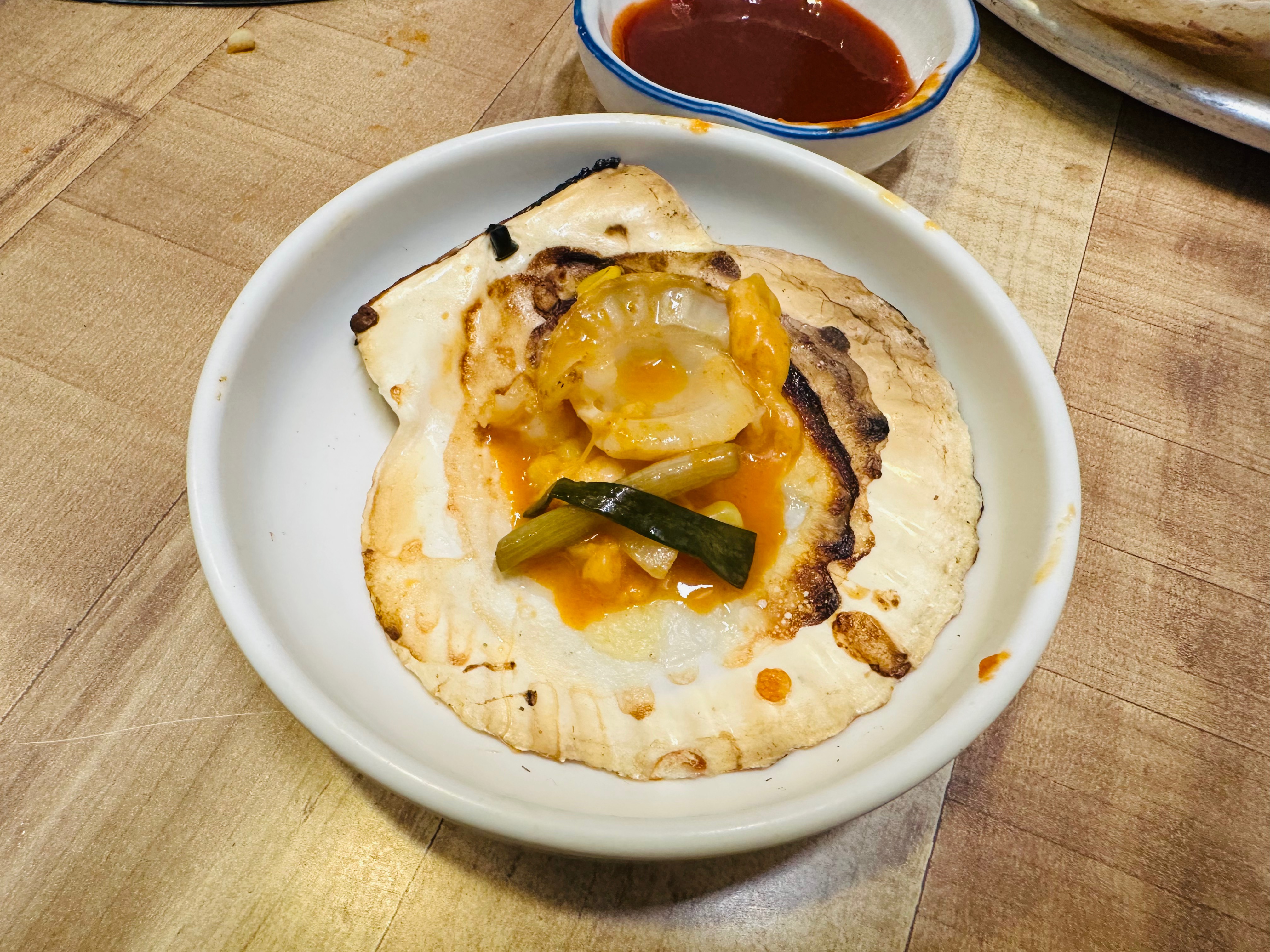 초장에 빠트린 가리비 아쉬우니 껍데기 위에 올려서